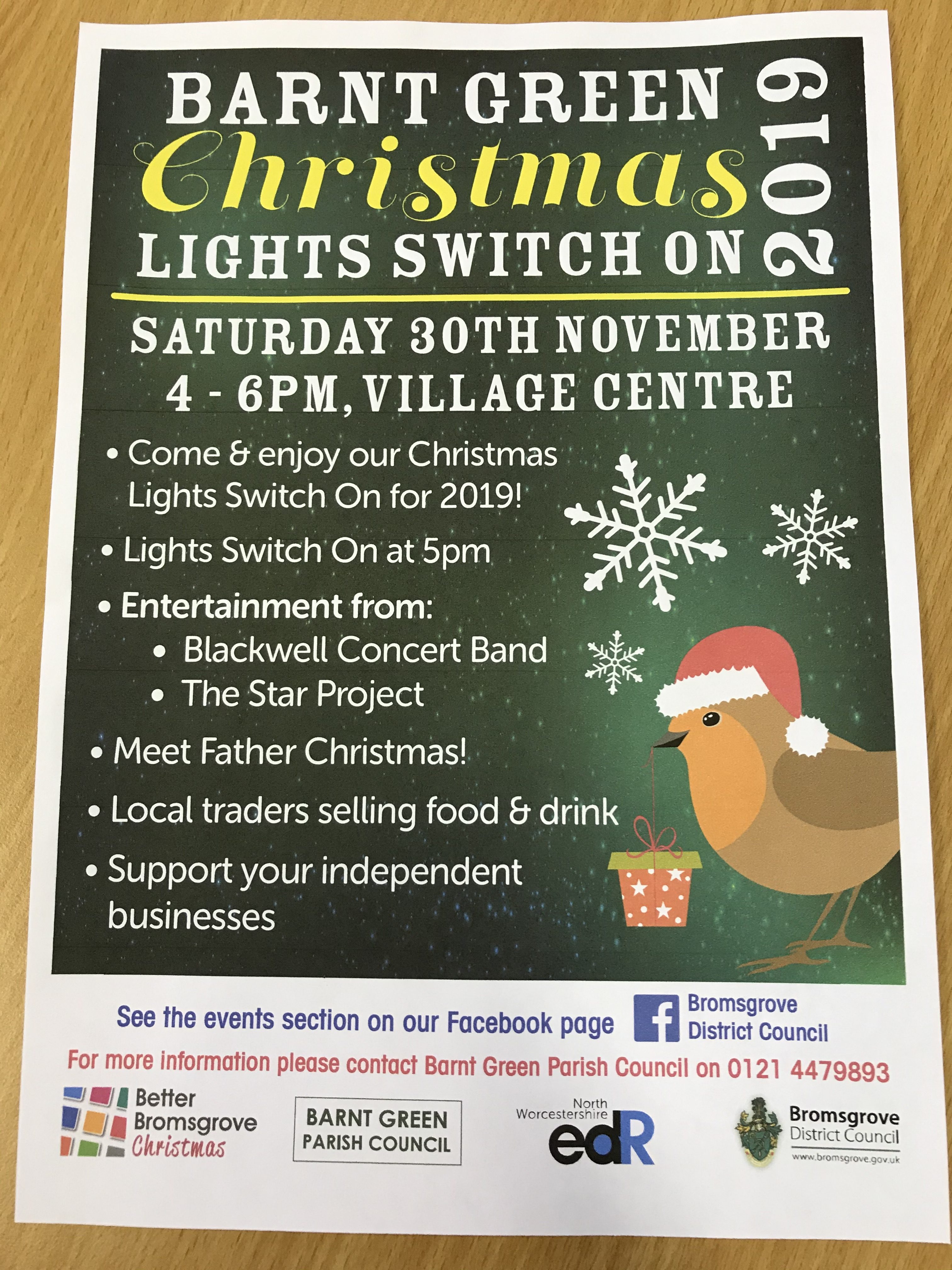 « All Events This event has passed. « Ordinary Parish Council Ordinary Parish Council » Barnt Green Christmas Lights Switch On November 30th, 2019 - 4:00 pm - 6:00 pm Add to calendar Google Calendar iCalendar Outlook 365 Outlook Live Details Date: November 30th, 2019 Time: 4:00 pm - 6:00 pm Organiser Barnt Green Parish Council Phone 0121 4479893 View Organiser Website Venue Millennium Park Hewell Road Birmingham, B45 8NW United Kingdom + Google Map Phone 0121 447 9893